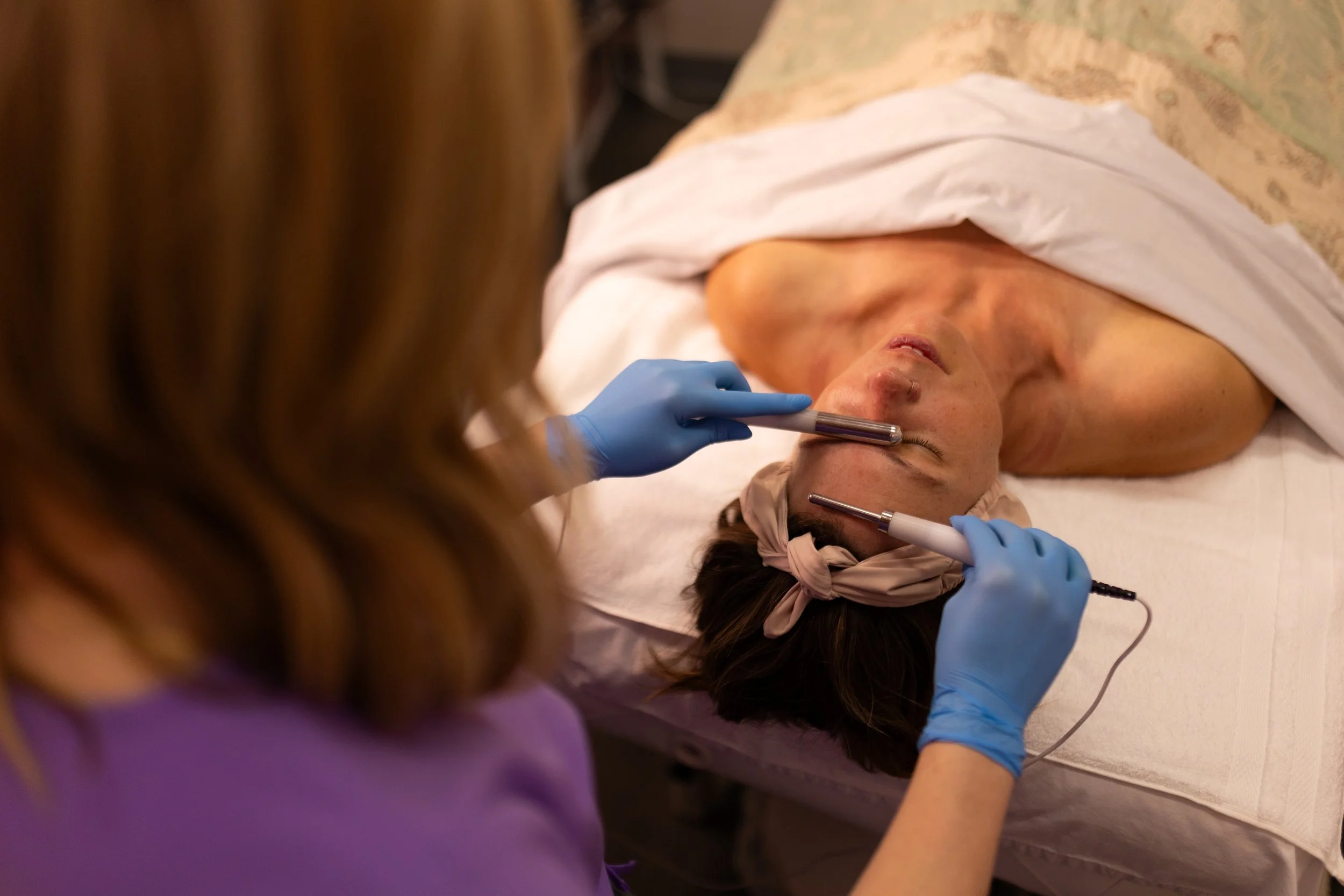 Proper head/neck alignment during treatments and gentle fascia release/massage techniques that support muscular balance, preventing strain + facial asymmetry.