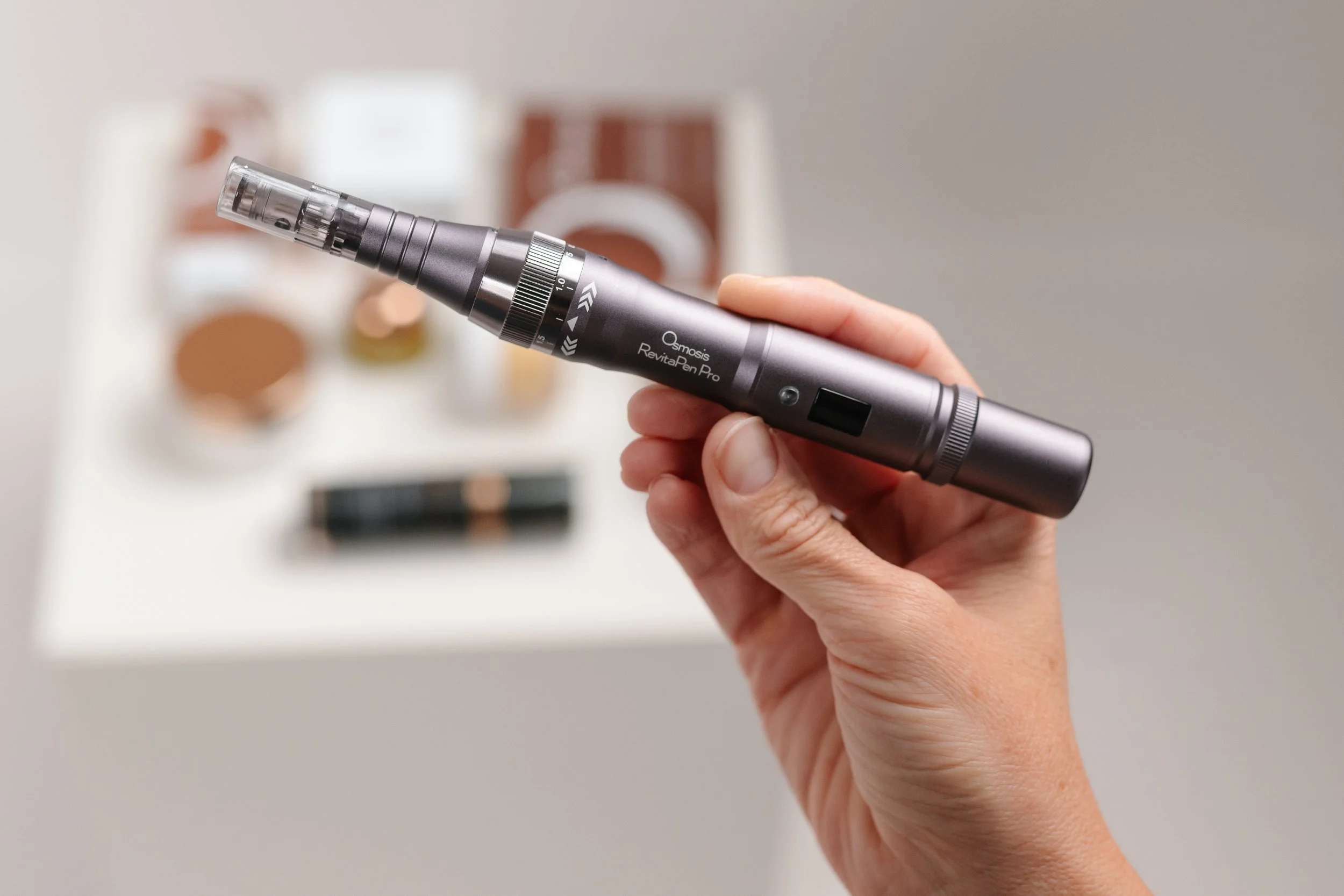 A non-invasive tool, Revitapen Pro enhances product absorption up to 65% and increases circulation for immediate, visible results with no downtime. It allows allows active ingredients to be driven deep into the skin for ultimate rejuvenation.